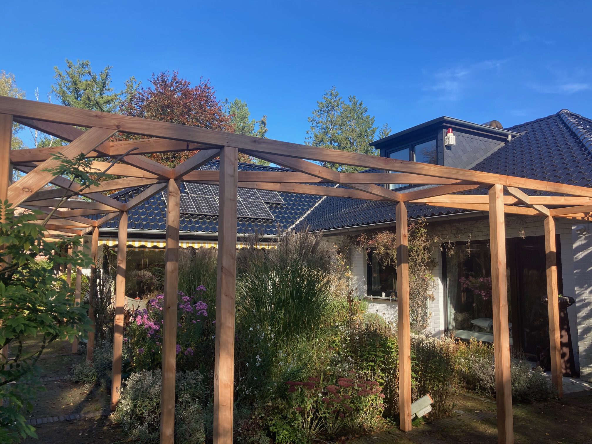 Das Natumaterial Holz findet auch im Außenbereich Anwendung, z.B. für Terrassen, Überdachungen, Carports usw.